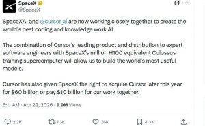 马斯克600亿美元收购Cursor:溢价20%开条件,双赢之举引关注