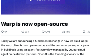 Warp开源新篇:AI Agent浪潮下,携手开发者共筑代理式开发新未来