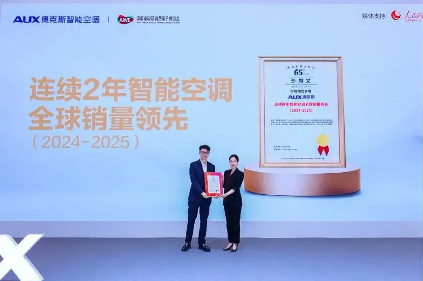 市场是最真实的试金石。发布会现场,奥克斯空调斩获两项重磅认证,奥维云网数据显示,奥克斯AI智能空调中国销量第一;沙利文则授予其“连续2年智能空调全球销量领先(2024-2025)”的权威地位。