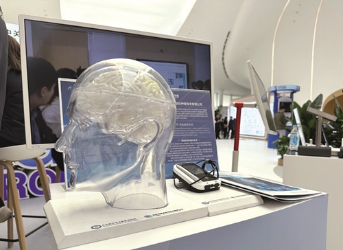 “北脑一号”“北脑二号”智能脑机系统在2026中关村论坛年会展出。(图/刘烨烨)