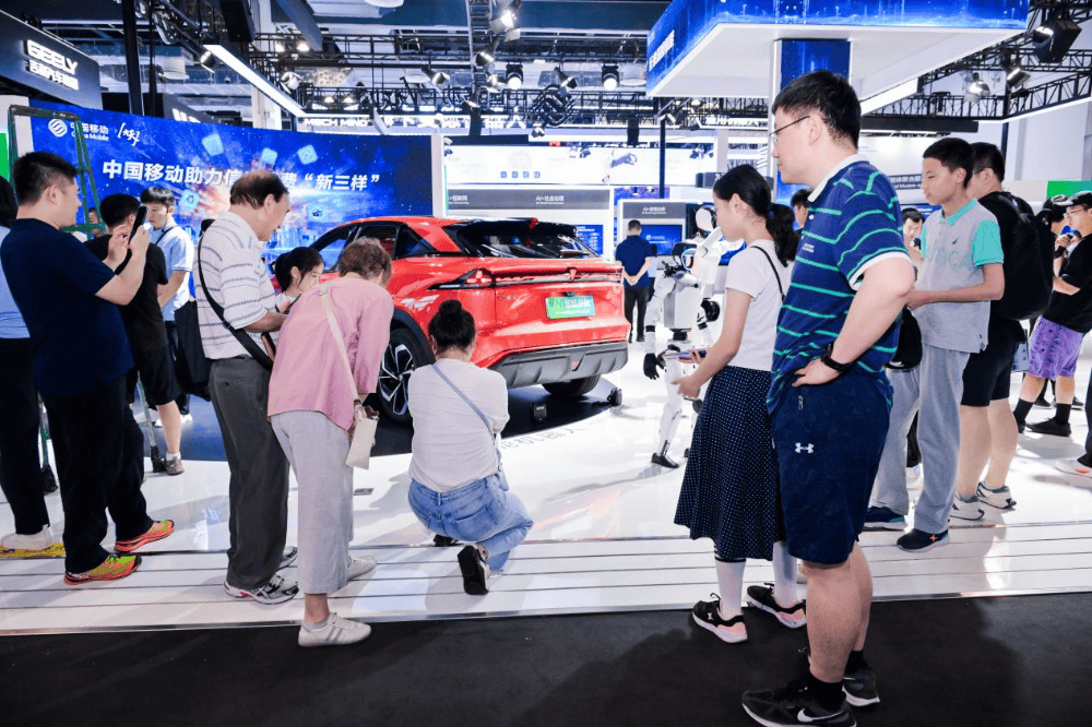 在“新三样”专区,一辆由中国移动与深蓝汽车联手打造的智能网联汽车吸引了众多参观者的目光。坐进驾驶舱,一股强烈的科技气息扑面而来。通过智能座舱,车主可以轻松实现一键回家、家庭监控查看、车辆共享手机流量等多种便捷功能。不同终端之间的无缝衔接,让智能生活触手可及。