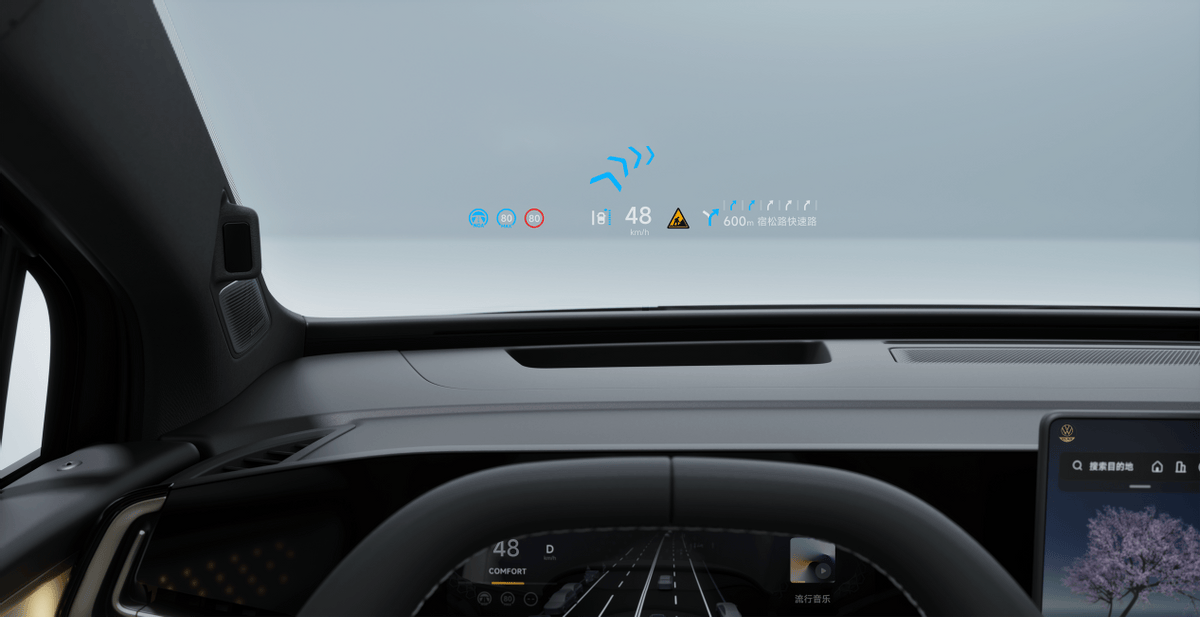 智能化领域的突破更显金标大众的技术底气。基于专为中国市场研发的CEA电子电气架构,与众07实现了座舱与智驾系统的全面革新。四屏交互系统(中控屏、仪表屏、副驾娱乐屏、AR-HUD)支持信息无缝流转,4nm制程的联发科8676芯片确保操作流畅度媲美旗舰手机。AI语音助手突破传统指令式交互,支持连续对话与语义理解,甚至允许用户自定义唤醒词与功能场景。这种“无感化”智能体验,正在模糊传统车企与科技公司的边界。